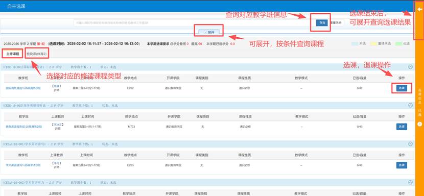 正式选课:2026年2月25日上午(具体时间见下表)