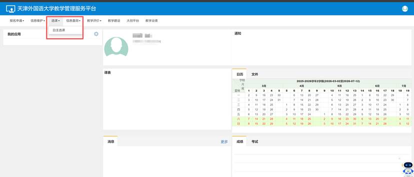 1. 进入教务系统后点击 选课-->自主选课